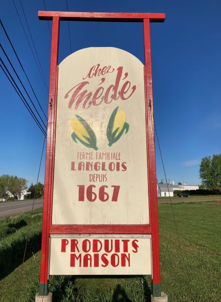 Retour vers le futur en 2022. Je suis ‘’Chez Médé’’, une ferme familiale qui de nos jours cultive, transforme et vend des produits laitiers et des produits maraichers. Du côté droit de la route sur le Chemin du Roy en direction de Montréal, on voit la terre familiale avec ses bâtiments de ferme et un magasin qui semble servir à vendre, en partie du moins, la production de la ferme. Le maïs semble à l’honneur pour le grand public qui passe sur la route. Au moment de mon passage en mai, le magasin est presque vide puisque nous sommes hors-saison mais on y voit des étalages de confitures en vente, de la saison précédente on imagine.