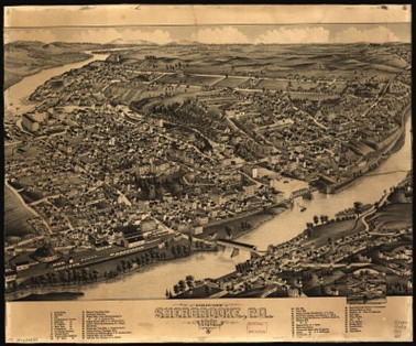 Ville de Sherbrooke autour des années 1880. Source : Bibliothèque et Archives nationales du Québec (BAnQ).