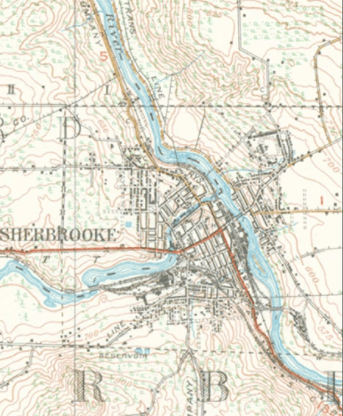 Carte de Sherbrooke vers 1933. Source : Bibliothèque et Archives nationales (BAnQ).