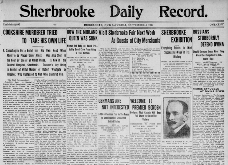 Édition du 4 septembre 1915 – Sherbrooke Daily Record. Source : Bibliothèque et Archives nationales du Québec (BAnQ).