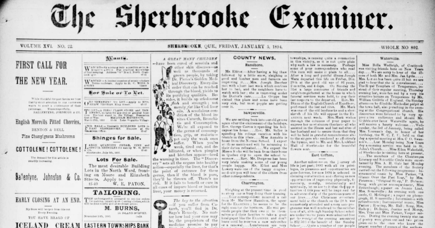 Édition du 5 janvier 1894 – The Sherbrooke Examiner. Source : Bibliothèque et Archives nationales du Québec (BAnQ).